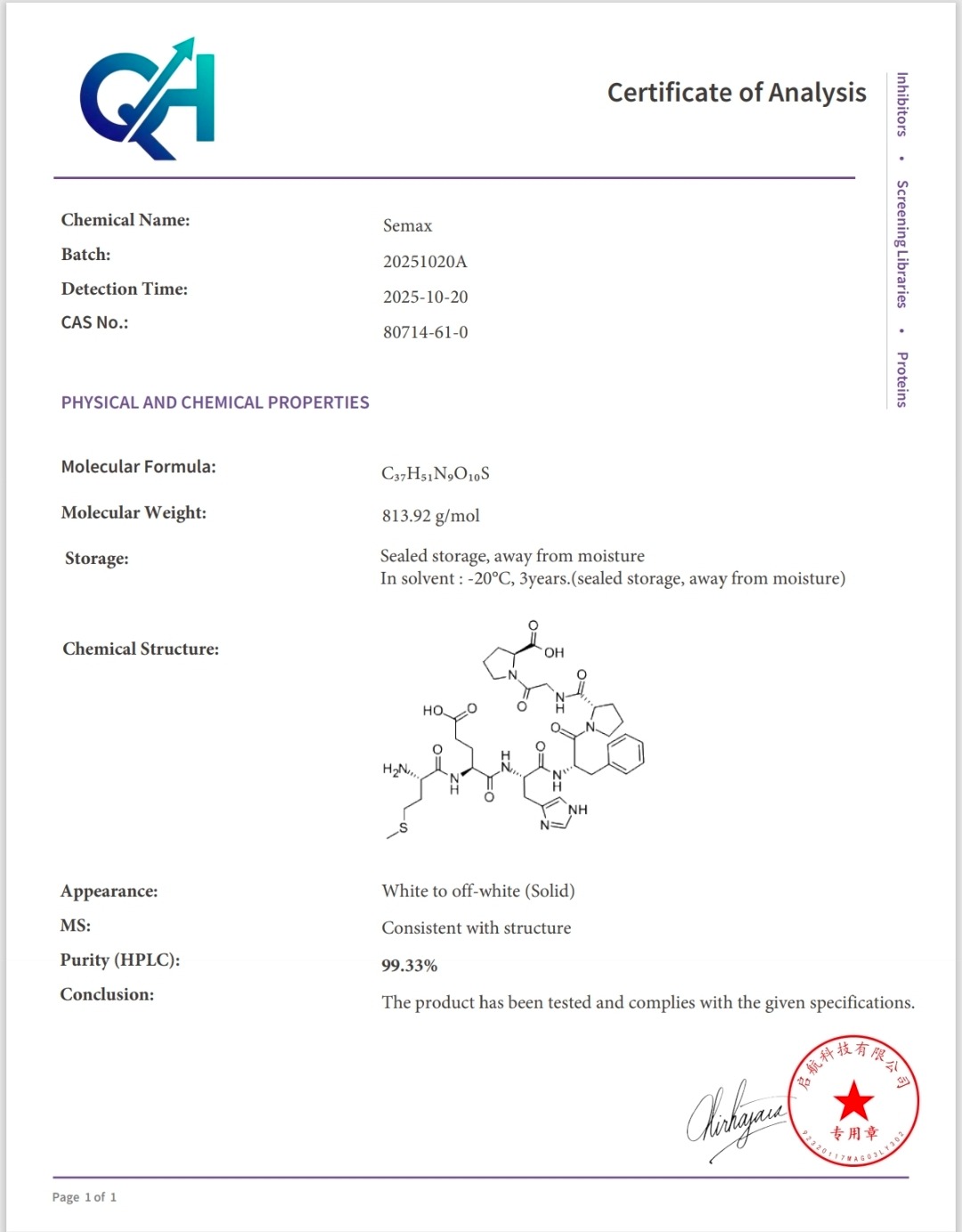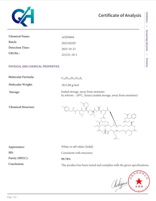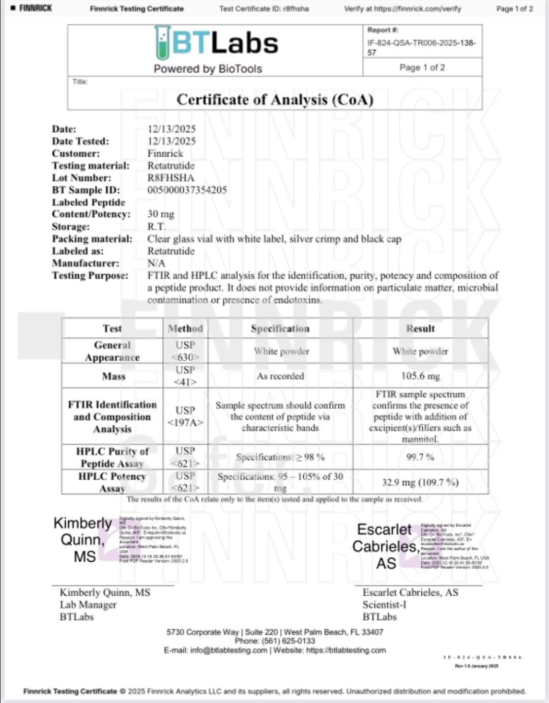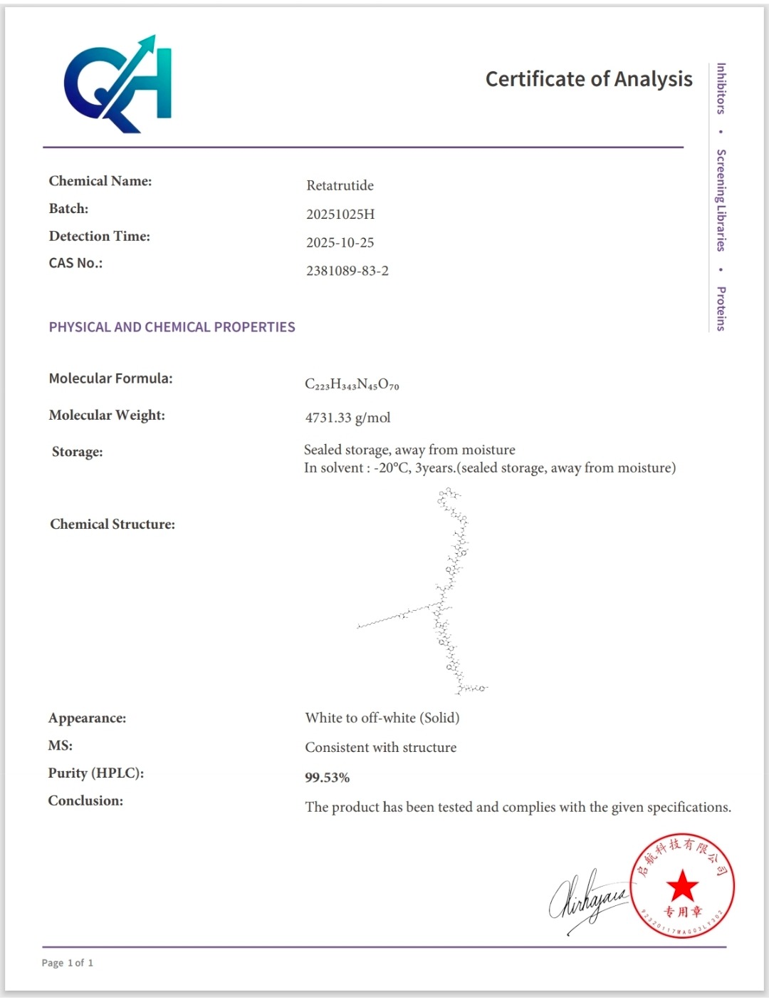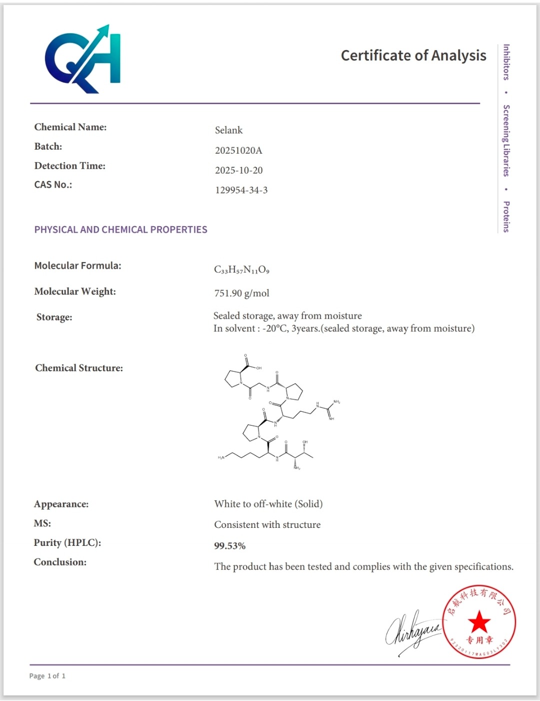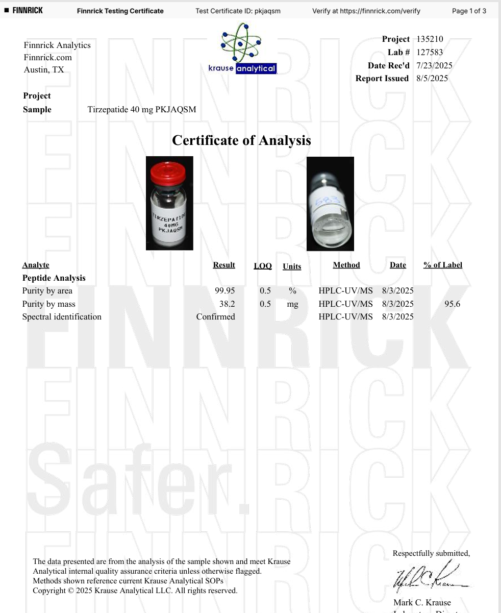 Here you can find the coa of each product showing purity and reliability