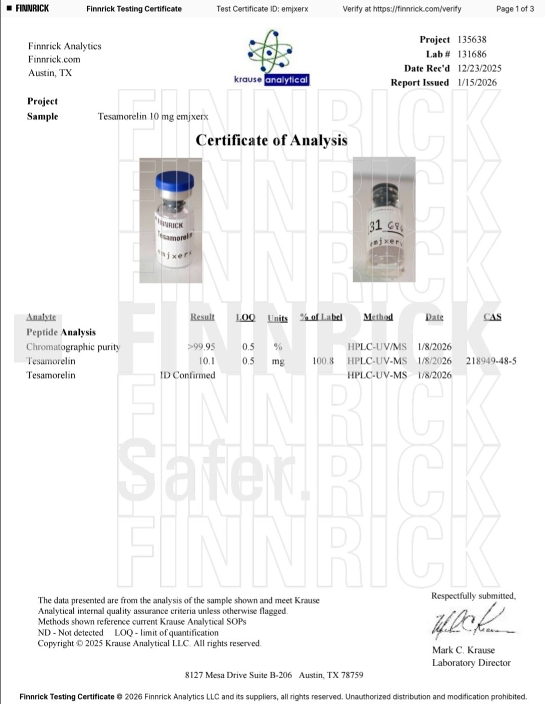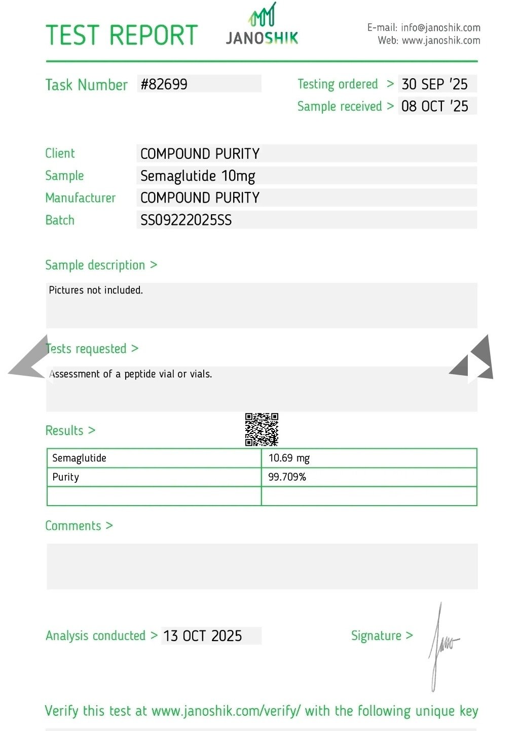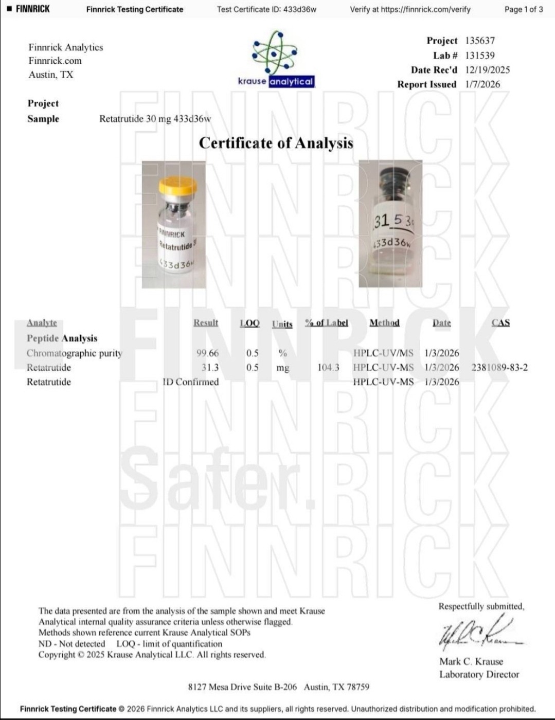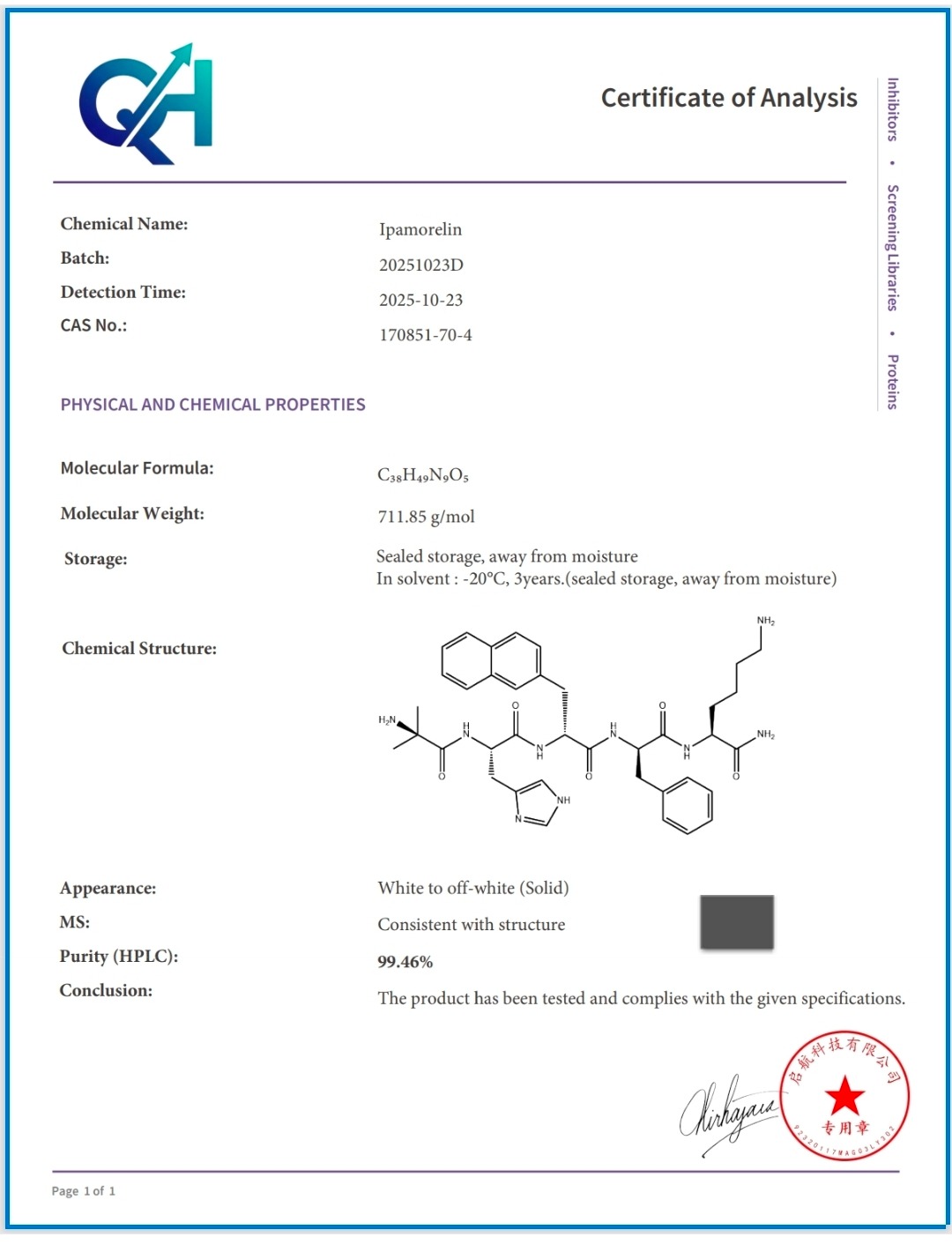 Here you can find the coa of each product showing purity and reliability
