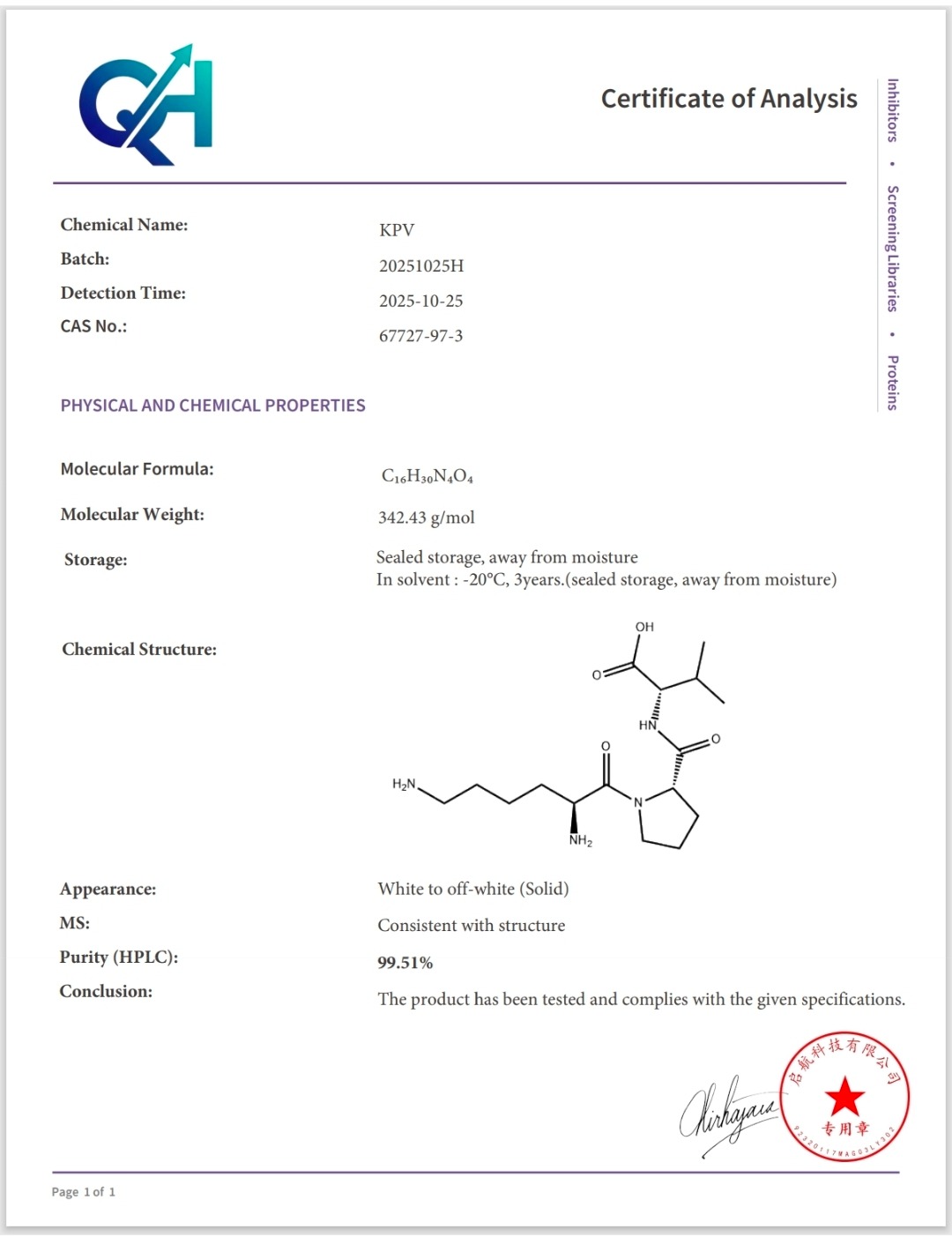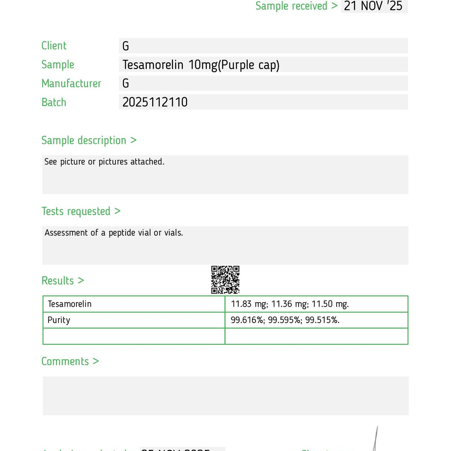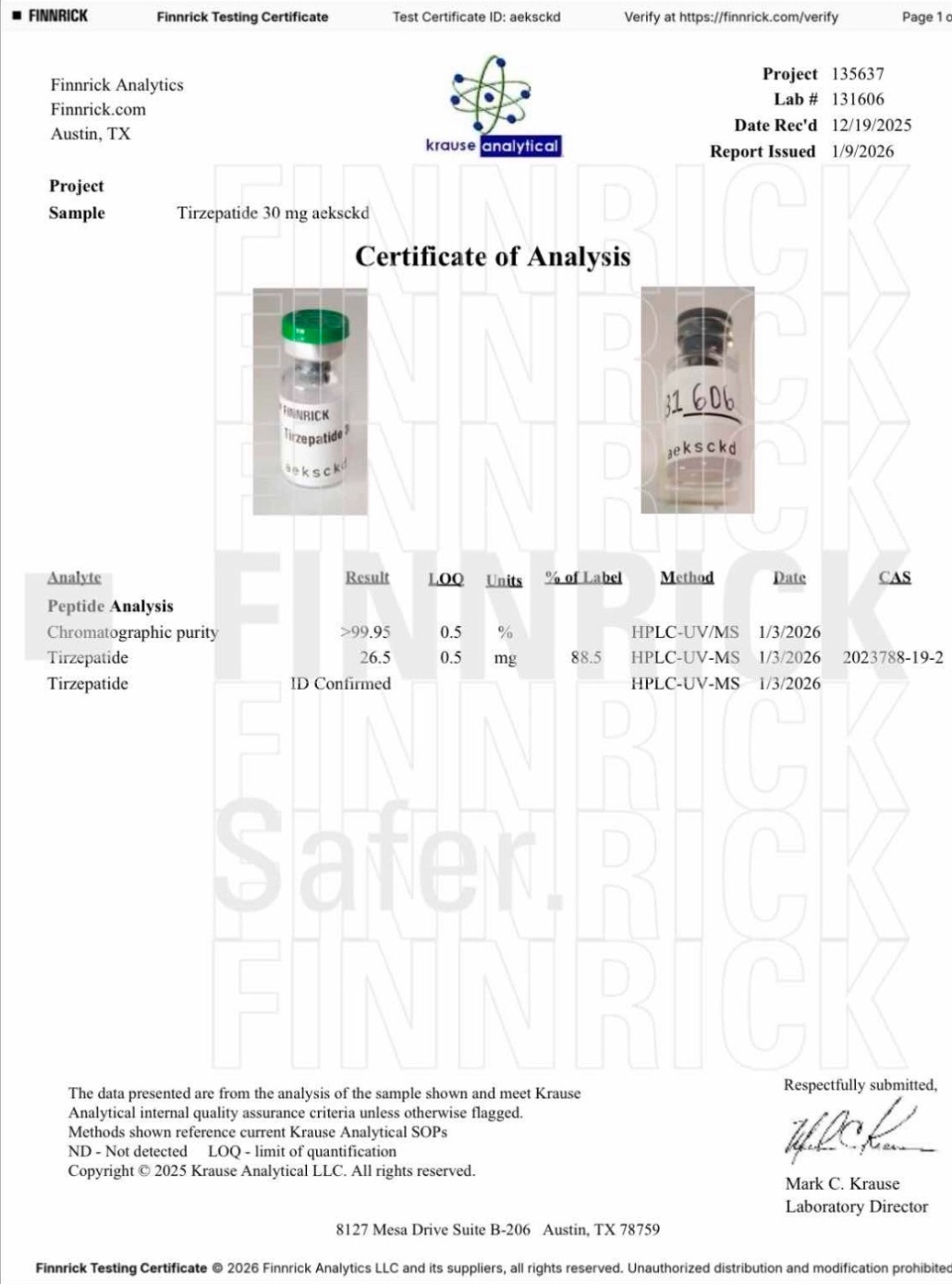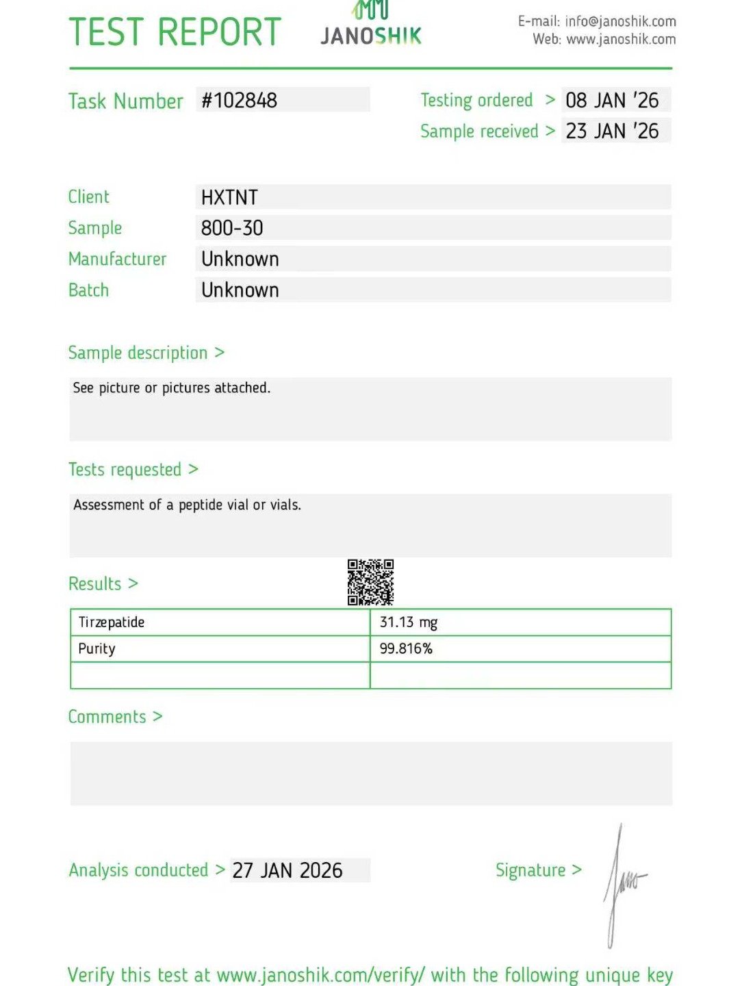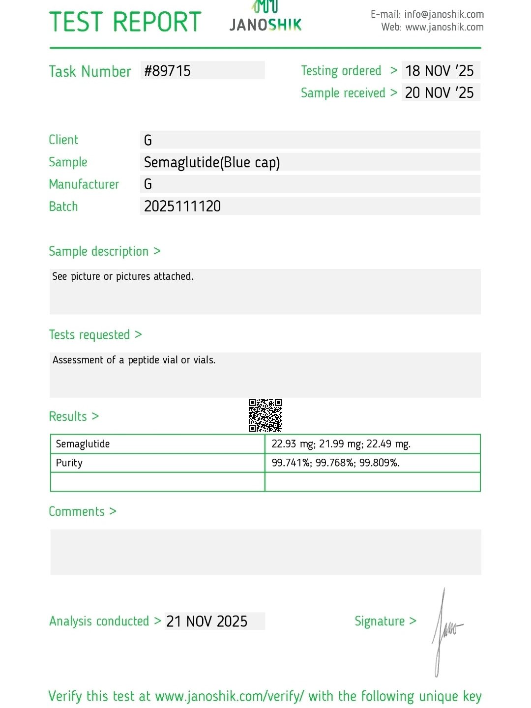 Here you can find the coa of each product showing purity and reliability