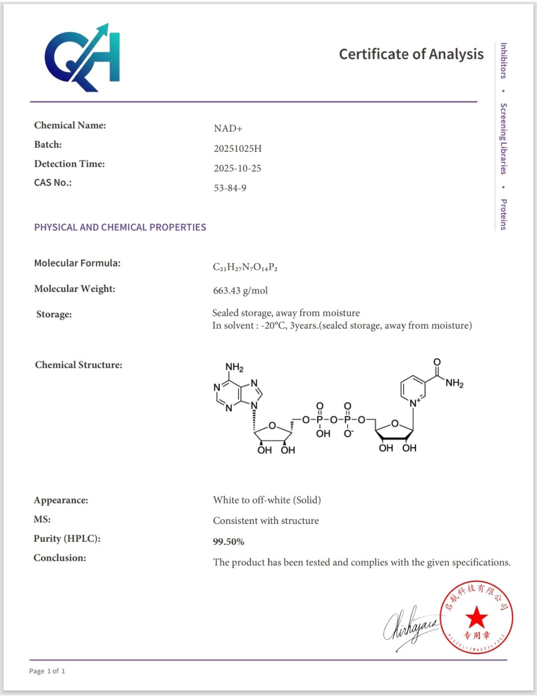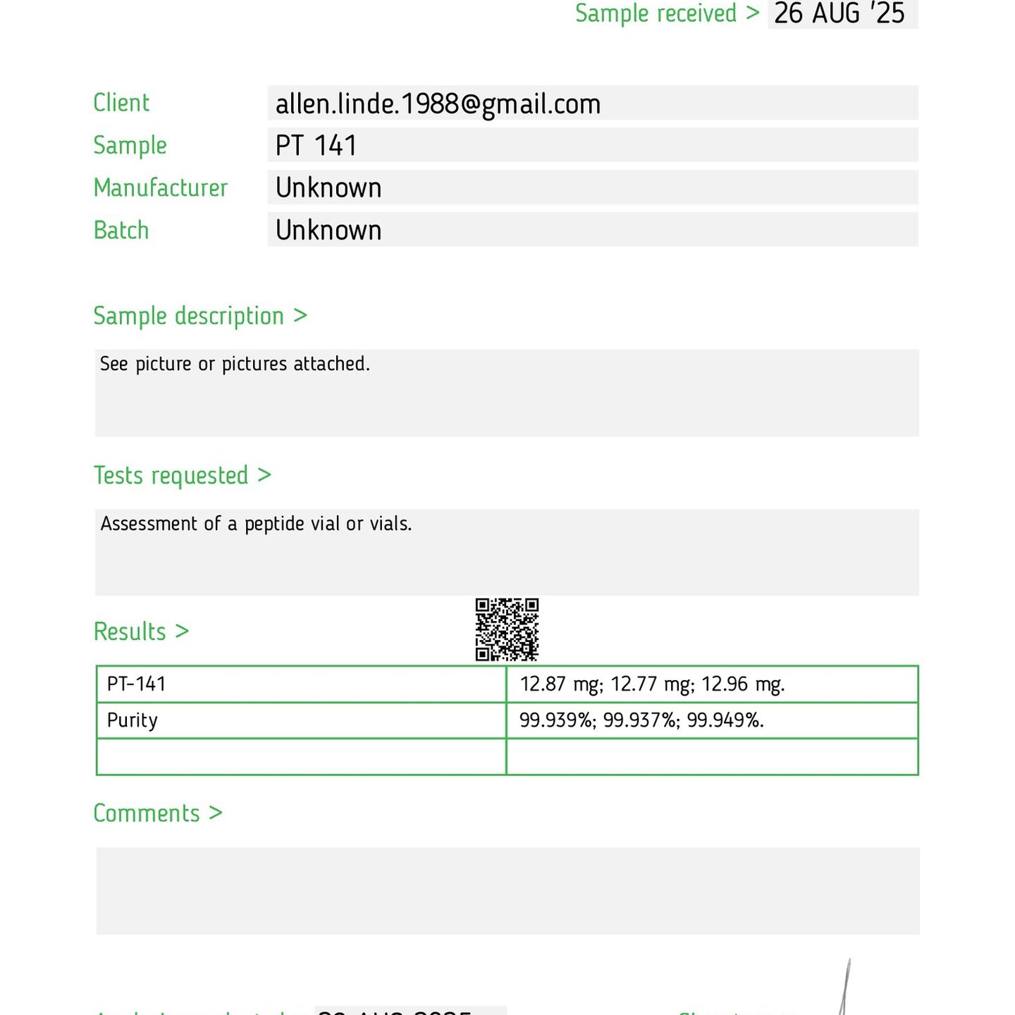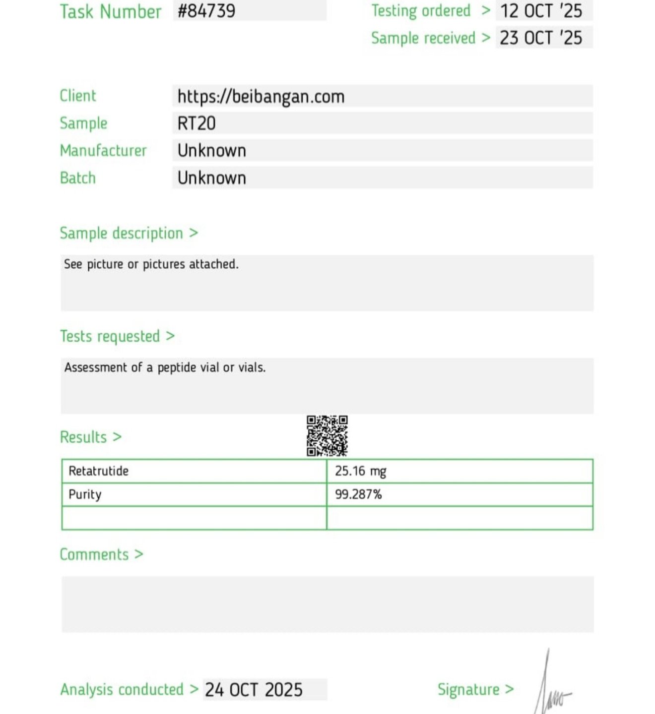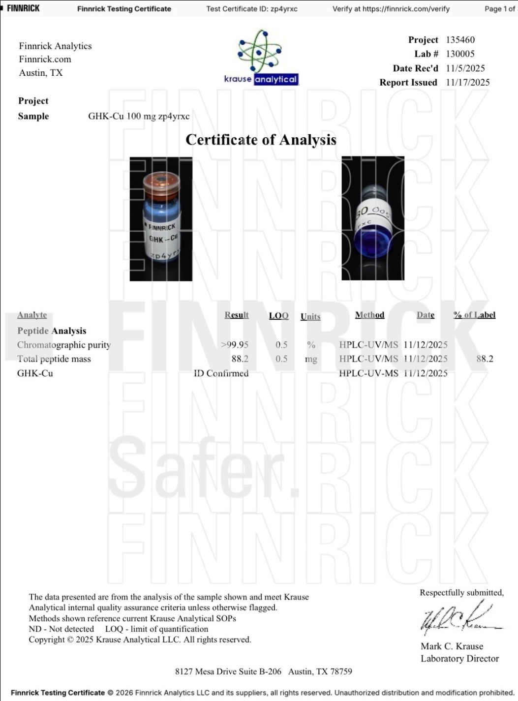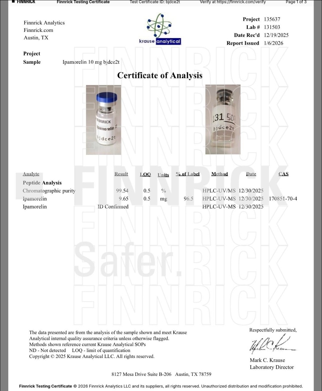 Here you can find the coa of each product showing purity and reliability