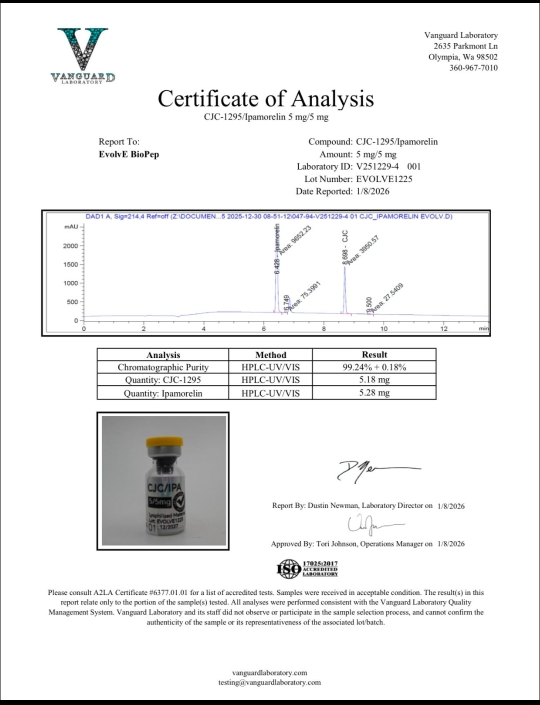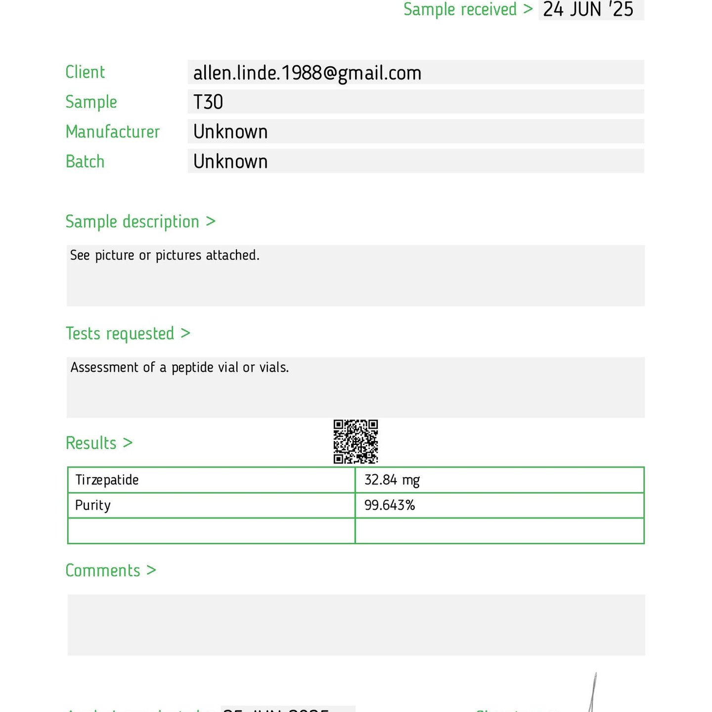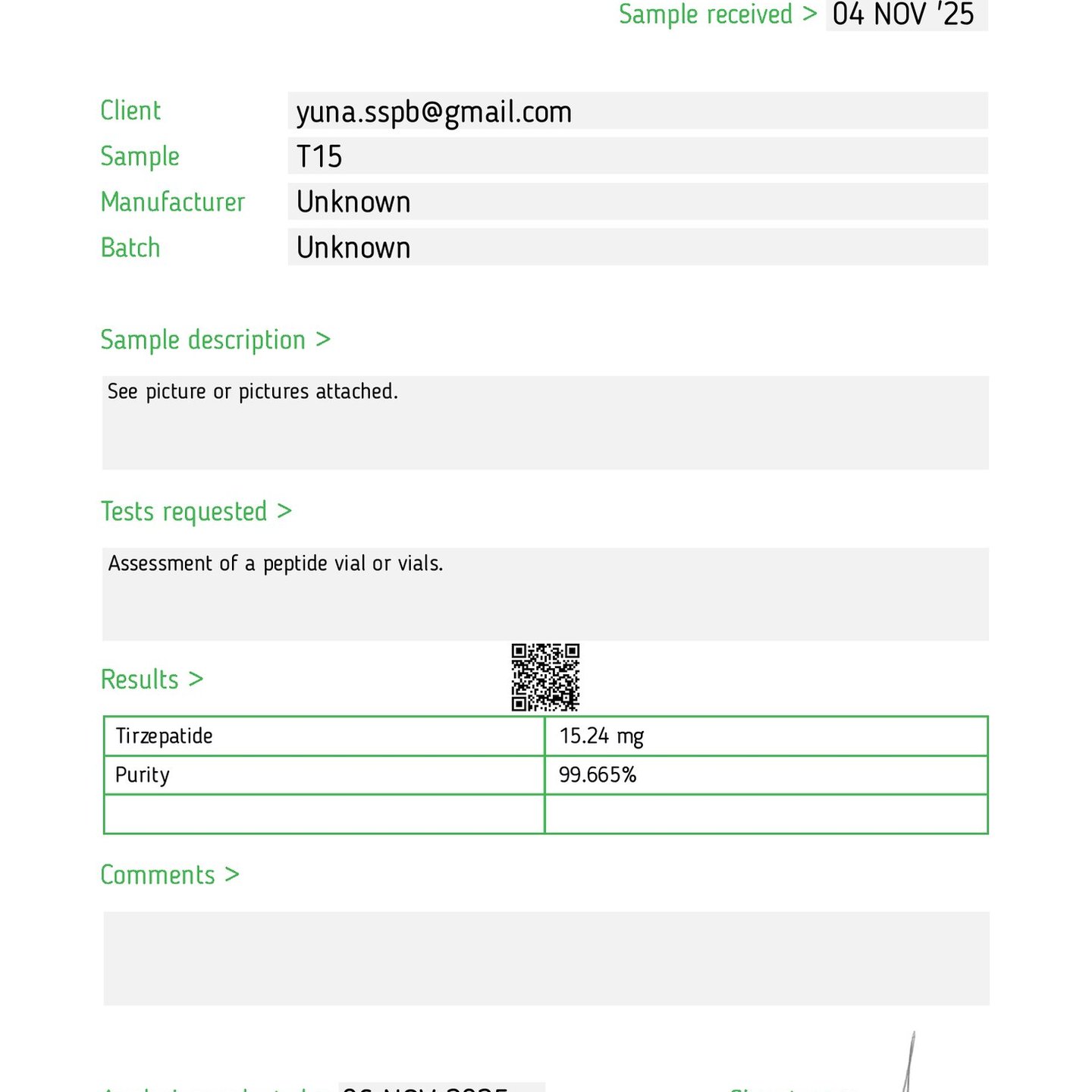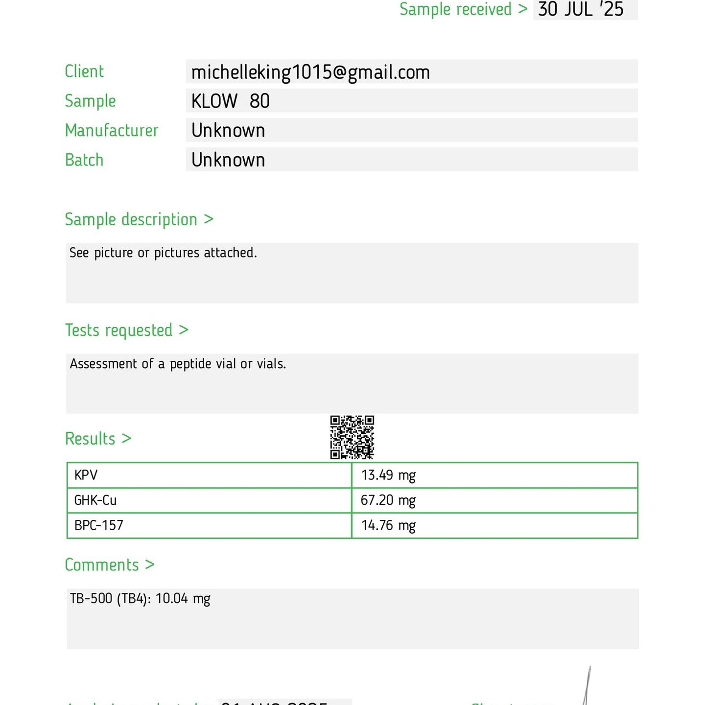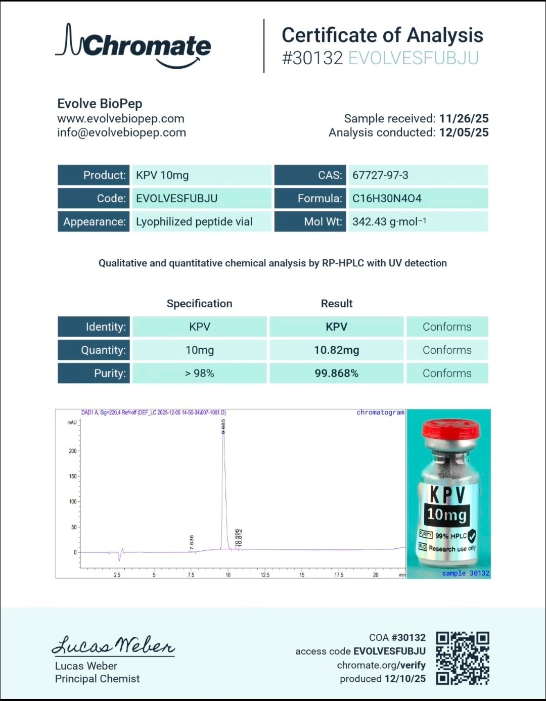 Here you can find the coa of each product showing purity and reliability